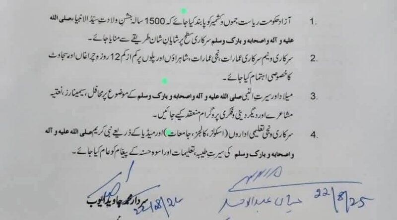 آزاد کشمیر کی خبریں آزاد کشمیرسے جشن ولادت رسول اللّٰہ صلی اللّٰہ علیہ وسلم ریاستی سطح پر منانے کے قرارداد منظور 24 August 2025 Staff Reporter آزاد کشمیر قانون ساز اسمبلی سے بھی 1500 سالہ جشن ولادت رسول اللّٰہ صلی اللّٰہ علیہ وسلم ریاستی سطح پر منانے کے قرارداد متفقہ طور پر منظور ..
